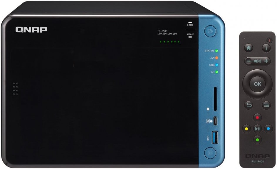 Supplied with a QNAP RM-IR004 remote control (compatible with RM-IR002 remote control)