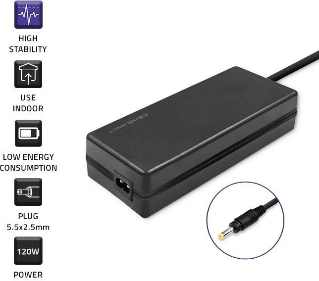 maximálny výkon 120 W, napätie 19 V, prúd 6,32 A, konektor 5,5 x 2,5 mmZobraziť viac