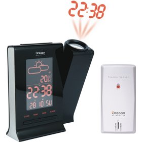 Meteostanica, inverzný displej, rádiom riadené hodiny, 12/24 hodinový formát, dátum, budík, vonkajšia/vnútorná teplota, projekcia na stenu---