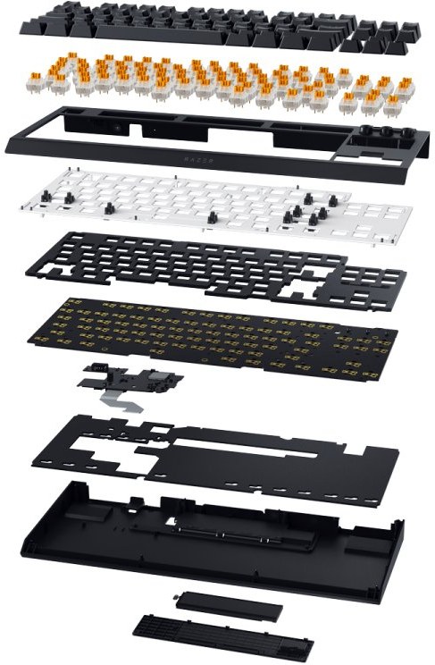 Klávesnica je vybavená predinštalovanými spínačmi Razer™ Orange Tactile Gen-3 a umožňuje jednoduchú výmenu vašich obľúbených mechanických spínačov – s dizajnom, ktorý podporuje 3-pinové aj 5-pinové konfigurácie.Optimalizovaný zážitok z písania