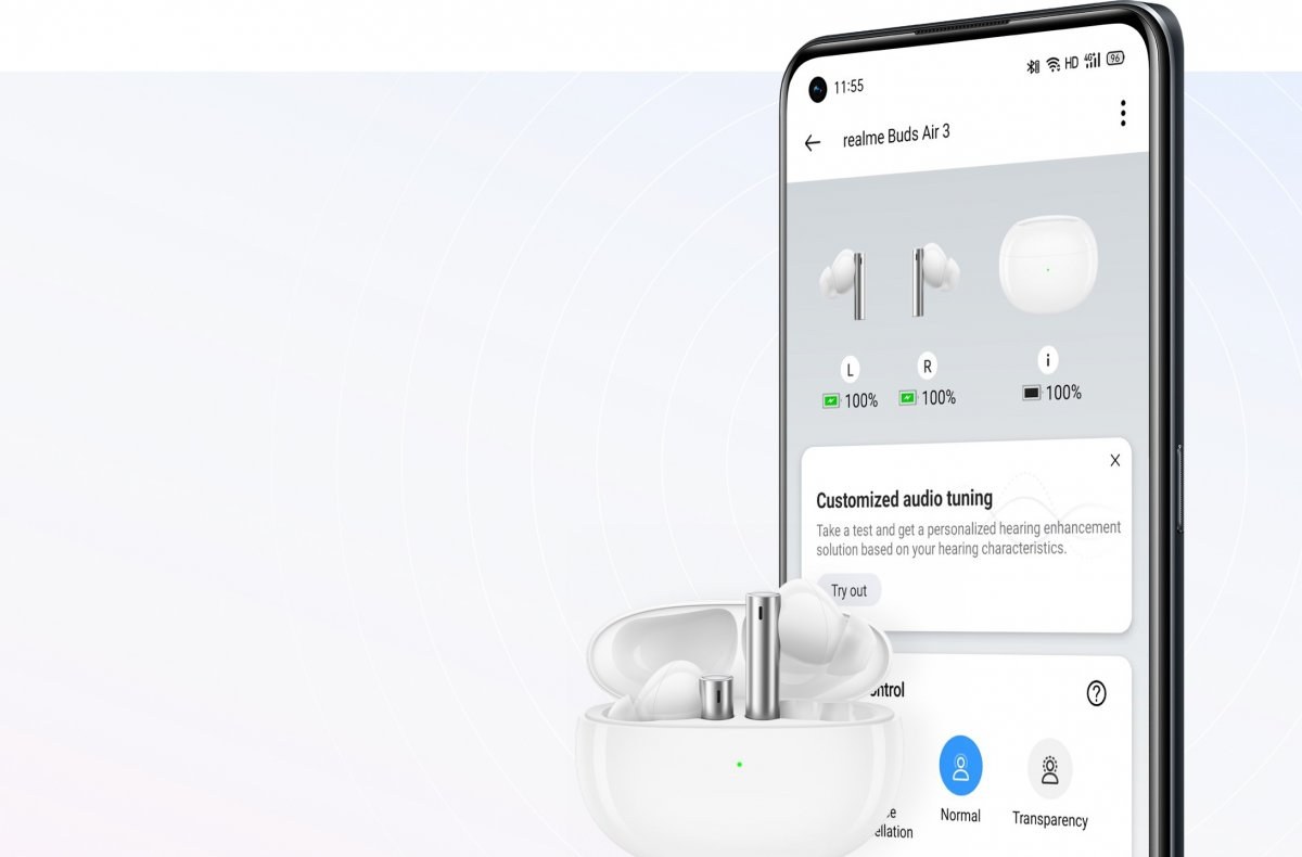 Vytvára prispôsobený profil pre zvukový zážitok prispôsobený špecifickej citlivosti vašich uší. Prispôsobte si dotykové funkcie, zapnite aktívne potlačenie hluku, získajte aktualizácie systému a oveľa viac v aplikácií realme Link.