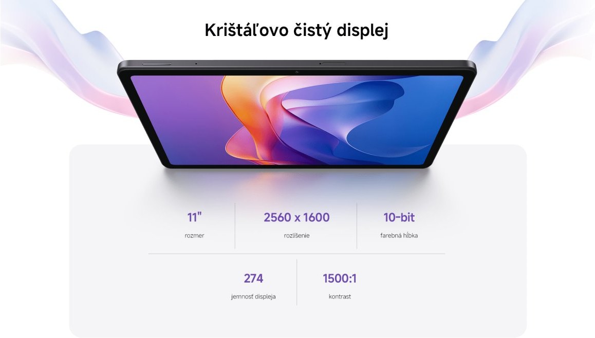 Redmi Pad 2 vás okúzli, 11" displejom s 2,5K rozlíšením (2560x1600), ktorý ponúka vynikajúci krištáľovo čistý obraz. Vďaka 10-bitovej farebnej hĺbke ponúkne až 1,07 miliardy farieb pre dokonale zobrazenie akéhokoľvek obsahu, živé odtiene, plynulé farebné prechody a množstvo detailov.*Veľkosť obrazovky Redmi Pad 2 je pri meraní uhlopriečky približne 11 palcov. Viditeľná plocha je menšia kvôli zakriveným rohom. Rozmery jednotlivých produktov sa môžu líšiť.