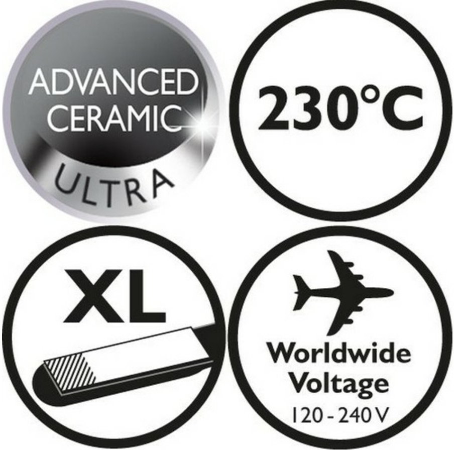Pomocou žehličky Pro-Ceramic Ultra dosiahnete uhladené, jemné a perfektne rovné vlasy bez námahy a v pohodlí domova.Táto žehlička bola vyvinutá s myšlienkou na dlhé a husté vlasy a vďaka dlhším žehliacim plochám budú Vaše vlasy "skrotené" doslova za chvíľku.Vďaka dlhým úzkym žehliacim plochám Vám táto žehlička umožní narovnať viac vlasov každým ťahom, pretože zvládne pojať väčšiu plochu, od korienkov ku končekom, čo Vám celé žehlenie vlasov urýchli.