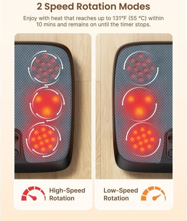 masážny prístroj, využíva hĺbkovú masáž a teplo na uvoľnenie napätia, zlepšenie krvného obehu, pomáha zmierniť únavuZobraziť viac