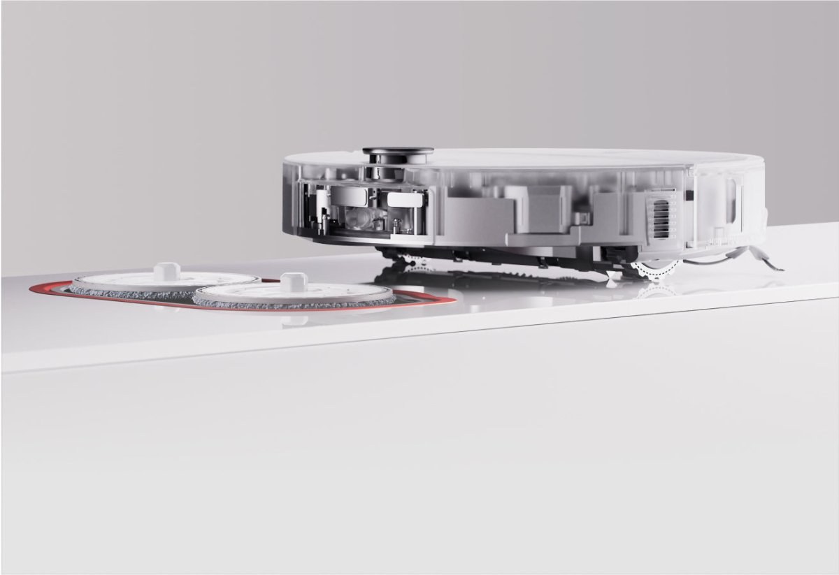 Multifunkčný dok zabezpečuje pranie mopov vriacou vodou (100°C), čistenie tryskou, sušenie pri 55?°C, dopĺňanie vody a automatické vysávanie prachu. Všetko bez zásahu používateľa.