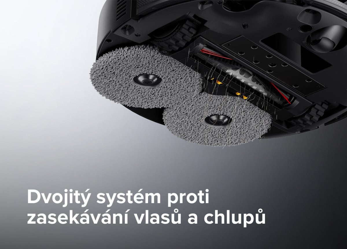 Hlavná kefa FreeFlow a bočná kefa FlexiArm Riser zabraňujú namotávaniu vlasov. Bočná kefa sa automaticky zasúva, aby nedochádzalo ku kolíziám s nábytkom.