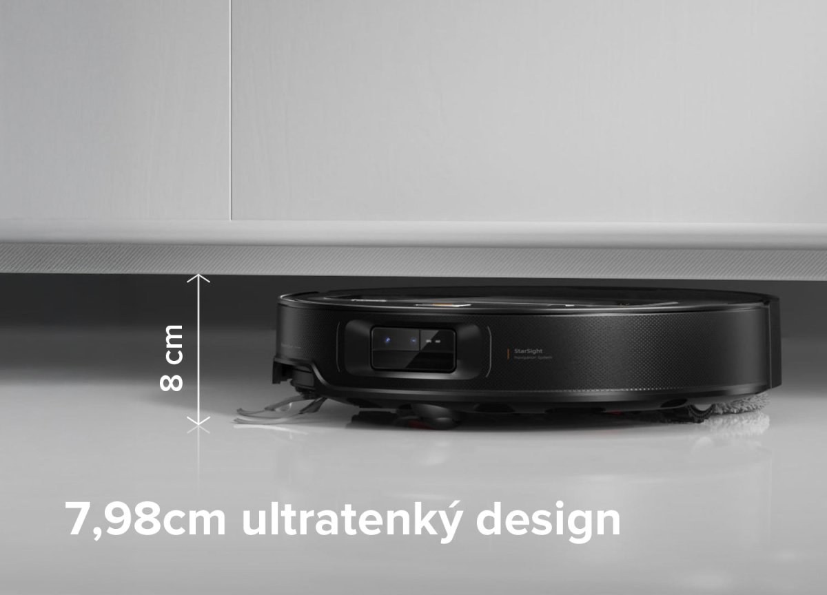 S výškou len 7,98 cm sa Saros Z70 bez problémov dostane pod nábytok a rozšíri upratovaciu plochu. Pokročilá navigácia mu umožňuje plynulý pohyb aj v nízkych priestoroch.