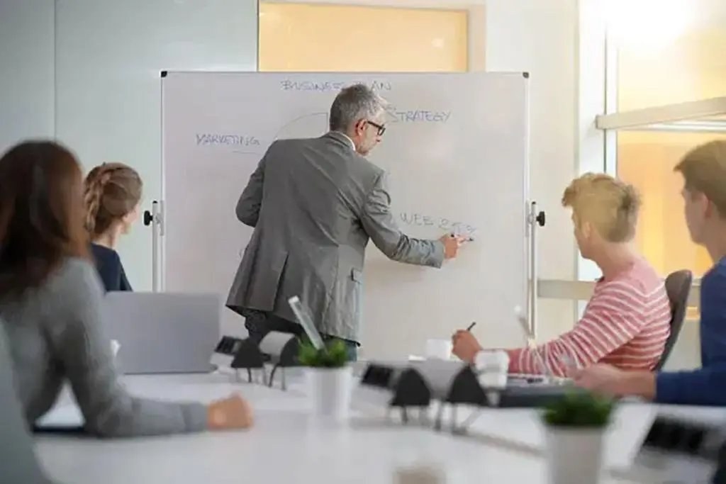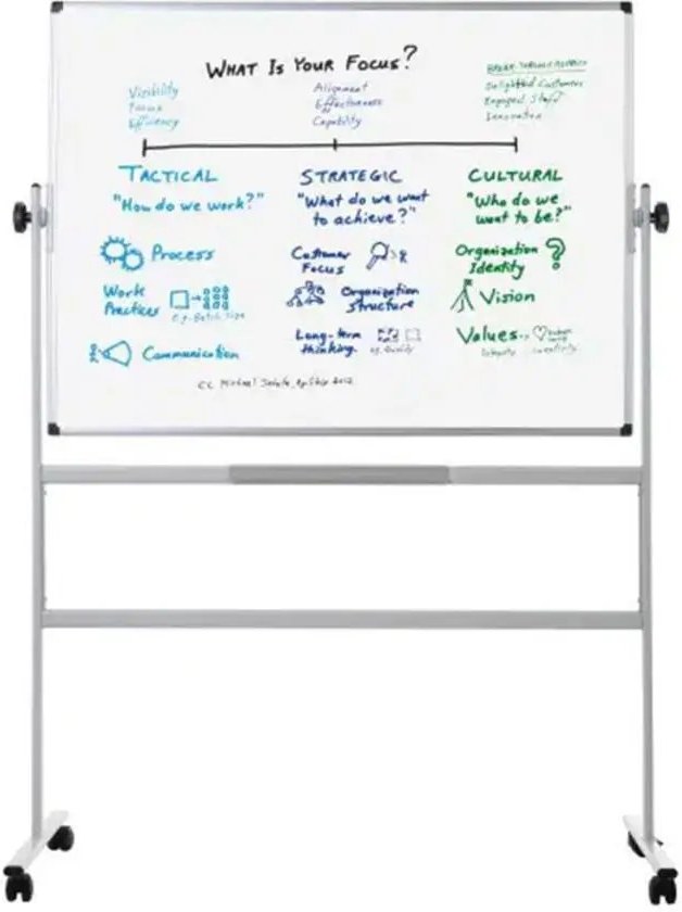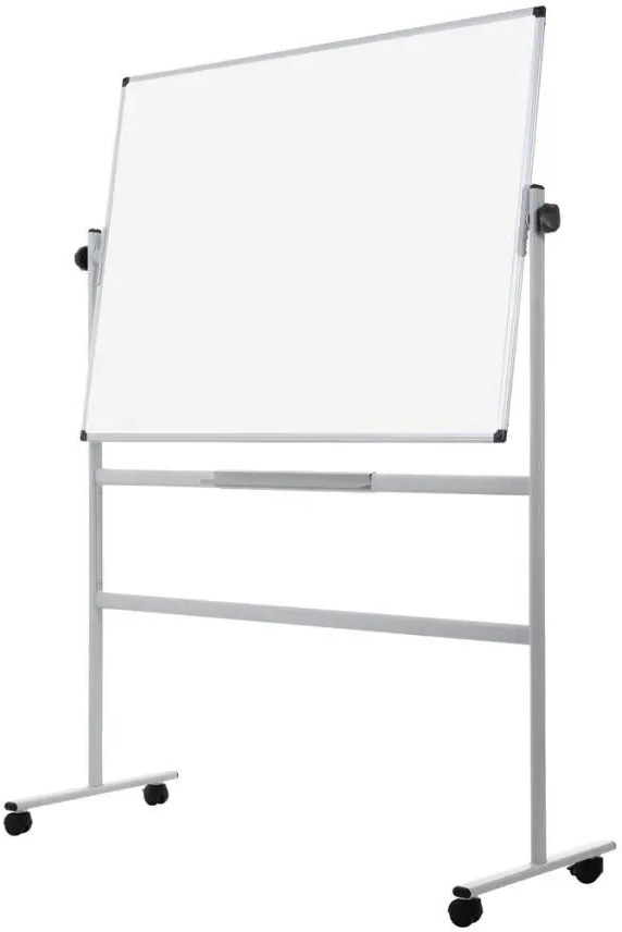 Elegantná obojstranne stierateľná mobilná tabuľa na štyroch kolieskach, ktoré jej dávajú mobilitu a stabilitu. Hliníková konštrukcia. Obe strany majú hladké za sucha stierateľné povrchy. Môžete písať a kresliť, zmazať to a robiť to všetko odznova. Plochy na písanie sú kompatibilné pomocou fixiek na suché utierky, gumy a utierok. Obojstranná funkcia mobilných tabúľ im umožňuje segmentovať informácie alebo súčasne vizualizovať rôzne aspekty projektu.