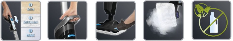Parný čistič Rowenta Steam Power ponúka dokonalé riešenie upratovania pre zdravé a hygienické domáce prostredie. Čistí pomocou pary bez použitia chemikálií a detergentov. S týmto parným mopom získate výhodu vysoko výkonného hĺbkového upratovania, pri ktorom dôjde k odstráneniu až 99 % mikróbov a baktérií, a k tomu vyspelé funkcie a vynikajúce ergonomické vlastnosti.