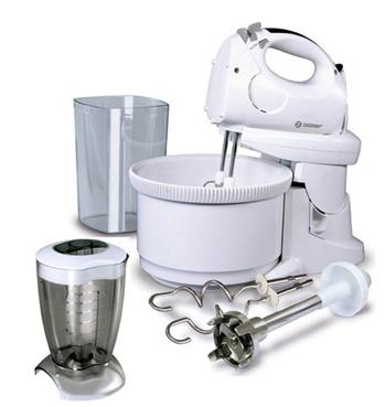 Mixér, MIX Robi, pätstupňové ovládanie rýchlosti, príkon 400 W, obojstranné tlačidlo turbo, vo výbave šľahača sa nachádzajú šľahacie metličky, hnetacie háky, plastový ponorný mixér, nádobka na mixovanie, otočná misa a výkyvný stojan, mixér s objemom 0,5 l