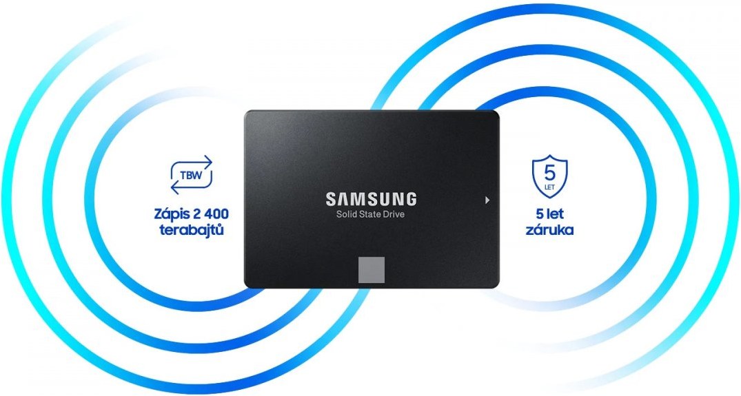 V porovnaní s predchádzajúcimi modelmi 850 EVO sa nový disk vyznačuje až osemkrát vyššou hodnotou TBW. * Najnovšia technológia V-NAND poskytuje až 2 400 TBW, respektíve päťročnú záruku. Takže spoľahlivé ukladanie a plynulá práca s objemnými súbormi, 4K videom alebo náročnými 3D aplikáciami je samozrejmosťou.