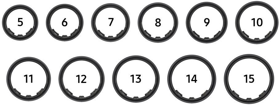 Nájdi si tú správnu veľkosť pomocou setu Galaxy Ring Sizing Kit. Veľkosti prsteňov Galaxy Ring sa môžu od bežných veľkostí prsteňov líšiť, preto si pri nákupe zaobstaraj set na určenie veľkosti, aby si pre svoj prst objavil/a ideálnu veľkosť. Vyber si z ponuky 9 vzorových prsteňov a maj ich nasadené viac ako 1 deň, aby si sa uistil/a, že sa ti nosia pohodlne.