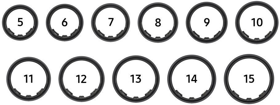 Nájdi si tú správnu veľkosť pomocou setu Galaxy Ring Sizing Kit. Veľkosti prsteňov Galaxy Ring sa môžu od bežných veľkostí prsteňov líšiť, preto si pri nákupe zaobstaraj set na určenie veľkosti, aby si pre svoj prst objavil/a ideálnu veľkosť. Vyber si z ponuky 9 vzorových prsteňov a maj ich nasadené viac ako 1 deň, aby si sa uistil/a, že sa ti nosia pohodlne.