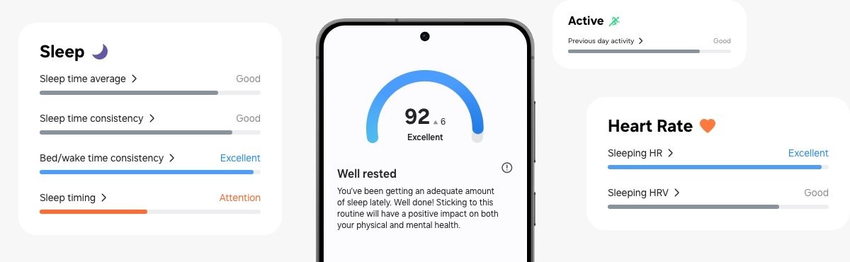 Čím častejšie prsteň Galaxy Ring nosíš, tým sa stáva inteligentnejším. Nasaď si ho a nechaj sledovať svoju fyzickú kondíciu po celý deň. Potom sa pozri do aplikácie Samsung Health a prejdi si komplexnú správu, ktorú zostavila umelá inteligencia Galaxy AI.