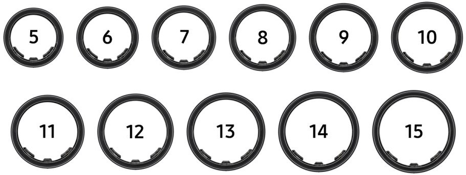 Nájdi si tú správnu veľkosť pomocou setu Galaxy Ring Sizing Kit. Veľkosti prsteňov Galaxy Ring sa môžu od bežných veľkostí prsteňov líšiť, preto si pri nákupe zaobstaraj set na určenie veľkosti, aby si pre svoj prst objavil/a ideálnu veľkosť. Vyber si z ponuky 9 vzorových prsteňov a maj ich nasadené viac ako 1 deň, aby si sa uistil/a, že sa ti nosia pohodlne.