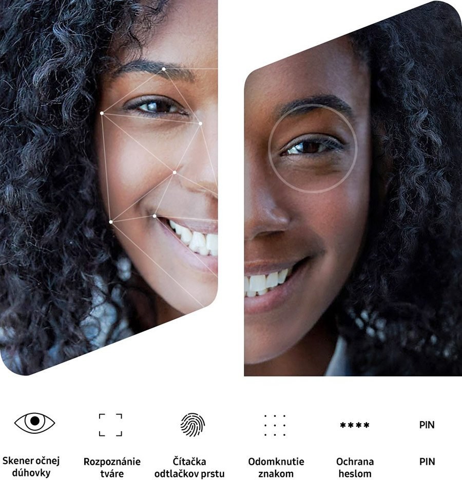 Inteligentné rozpoznanie tváre v kombinácii so skenerom očnej dúhovky je zárukou toho, že prístup k svojmu telefónu získate skutočne rýchlo a jednoducho v akomkoľvek svetle. Okrem toho garantuje tiež maximálnu úroveň zabezpečenia vášho telefónu pred všetkými zvedavými očami - o svoje citlivé dáta tak už nemusíte mať žiadne obavy.Vlastnosti
