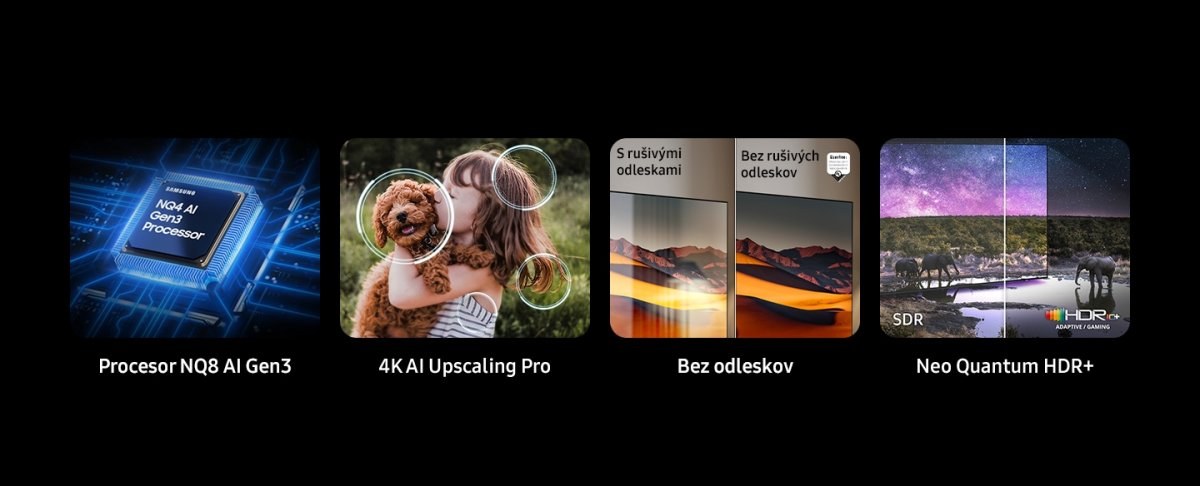 Výkonný procesor s umelou inteligenciou ti zaručí skvelý 4K obrazový zážitok. NQ4 AI Gen3 so 128 neurónovými sieťami optimalizuje obraz aj zvuk pre perfektný streaming, hranie hier alebo sledovanie športových prenosov.