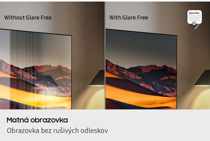 Uži si žiarivé farby na matnej obrazovke. Tá využíva technológiu Glare Free, aby zabránila nepríjemným odrazom svetla a znižovala oslnenie. Pri sledovaní filmov a obľúbeného obsahu ťa tak nebude nič rušiť – či už vonku svieti slnko alebo máš zapnuté interiérové svetlá.