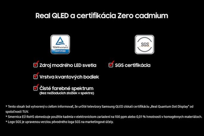 Živé a presné farby zosilnené panelom Quantum Dot od spoločnosti Samsung, ktorý neobsahuje kadmium, poskytuje až 100 % farebný objem.
