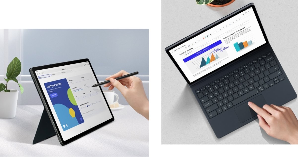 Zážitok ako na počítači jediným klepnutímPoužívajte svoj tablet s ľahkosťou. Ochranný kryt s funkčnými klávesmi bežnej veľkosti a touchpadom vám v kombinácii s režimom DeX poskytnú takmer rovnako pohodlný zážitok, akoby ste pracovali na počítači. A to všetko pomocou jediného klepnutia.