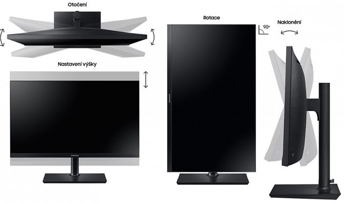 Dokáže sa otáčať, nakláňať a je výškovo nastaviteľný. Monitor podporuje stojan typu VESA, ktorého inštalácia je navyše veľmi jednoduchá. Vďaka jeho funkciám môžete obrazovku umiestniť do ľubovoľnej výšky či uhla a zdieľať tak obsah obrazovky napríklad so svojimi prísediacimi kolegami.Technické parametre: