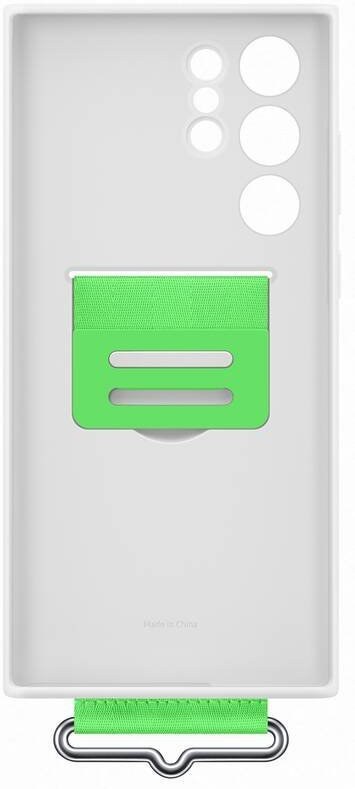 Na zadní straně ochranného silikonového krytu se nachází originální popruh pro bezpečné držení telefonu v ruce.
