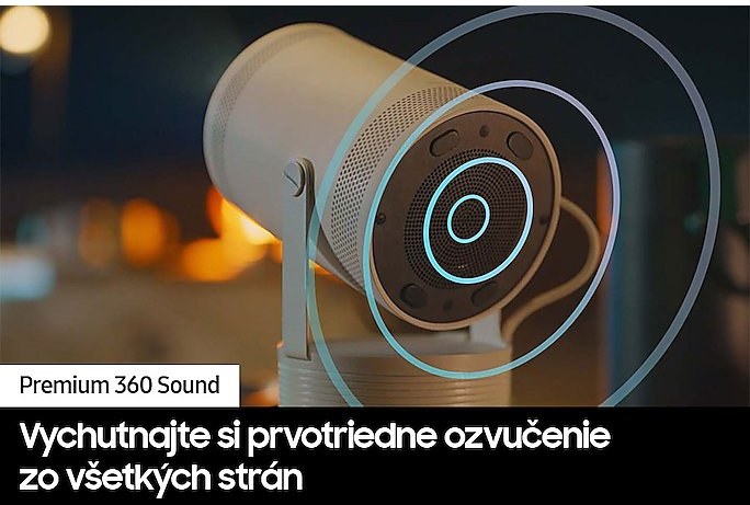Výkonný vstavaný reproduktor projektoraThe Freestyle prináša bohatý 360-stupňový zvuk, ktorý vás maximálne pohltí a bude k vám plynúť skutočne z každého smeru.