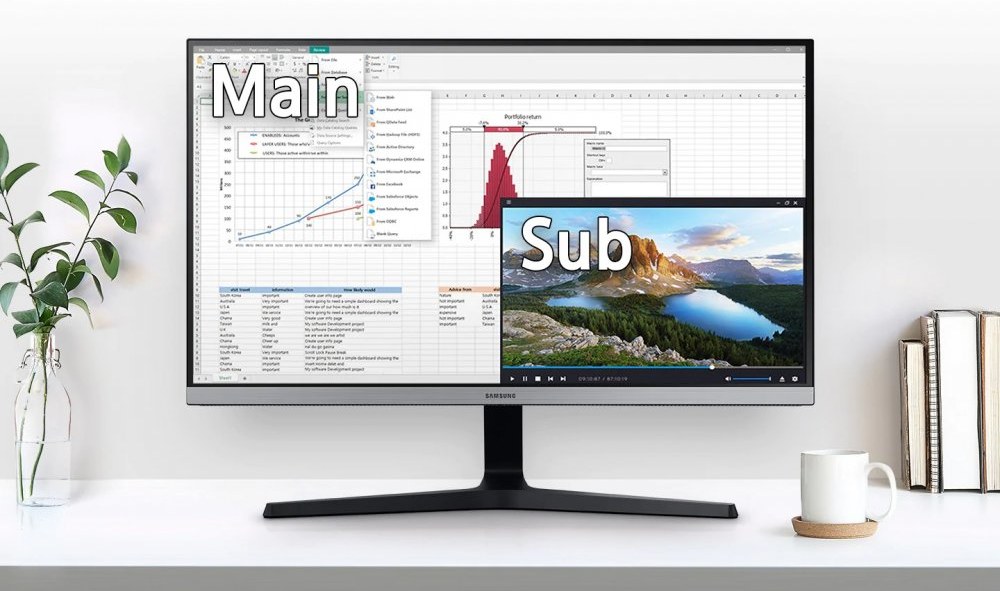 Chcete využiť každý milimeter svojho monitoru naplno, pre monitor Samsung to určite nie je žiadny problém. Vďaka Picture-by-Picture (PBP), si môžete rozdeliť obrazovku na polovicu a naplno využiť obsah z dvoch rôznych zdrojov vedľa seba. Ďalšou z možností tohto monitora je technológia Picture-in-Picture (PIP), kedy môžete ovládať niekoľko aplikácií a programov naraz podľa toho ako budete potrebovať.