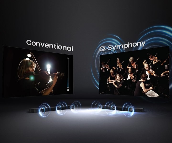 Technológia Q-Symphony prepája zvuk televízora a soundbaru, čím vytvára úchvatný priestorový efekt bez nutnosti stlmiť TV.