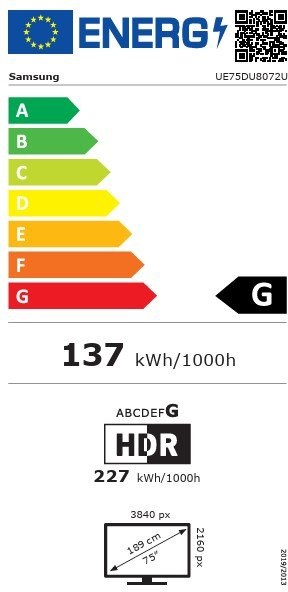 Samsung UE75DU8072 SMART LED TV 75" (189cm), 4K