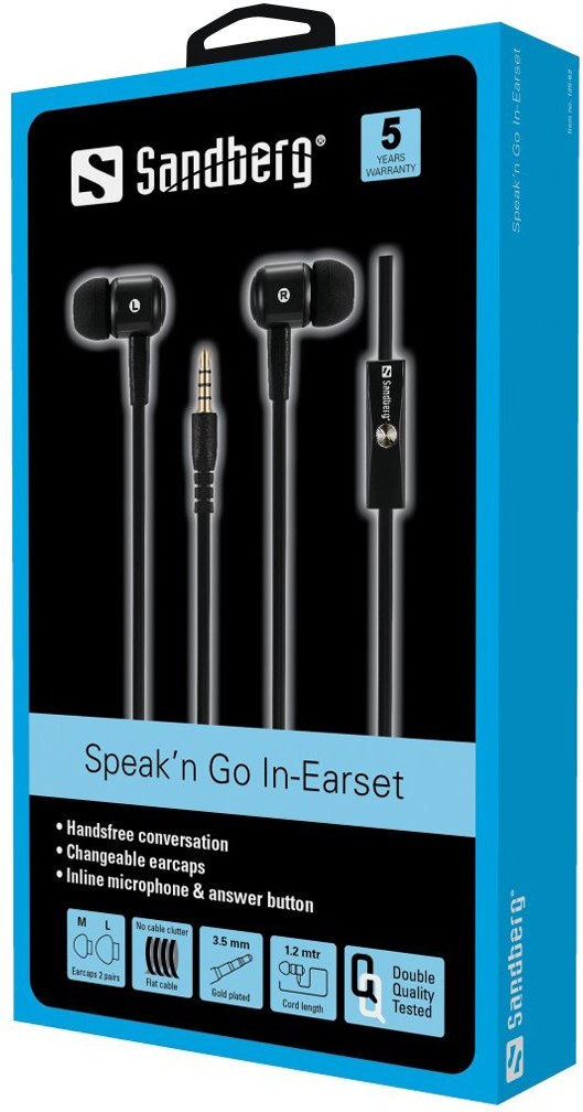 Vďaka slúchadlám do uší Sandberg Speak'n Go In-Earset získate skvelý zvuk. Kábel je vybavený mikrofónom a tlačidlom pre prijímanie prichádzajúcich hovorov.