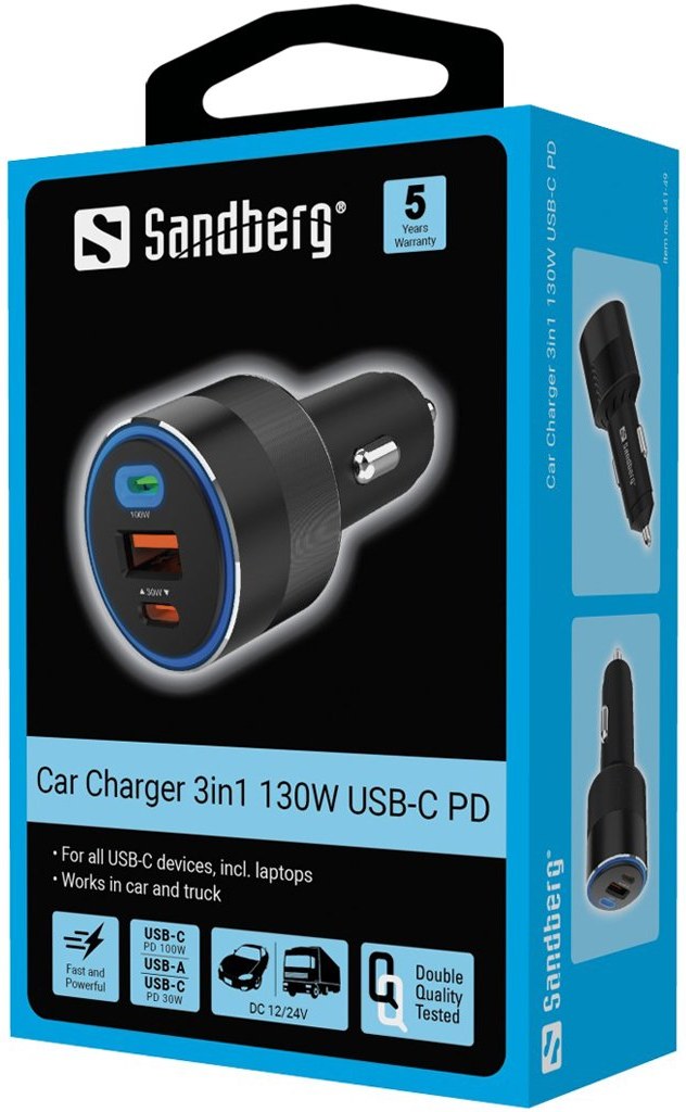 1 nabíjačka do auta 3v1 130W USB-C PDsandberg.sk/sk/product/car-charger-3in1-130w-usb-c-pd