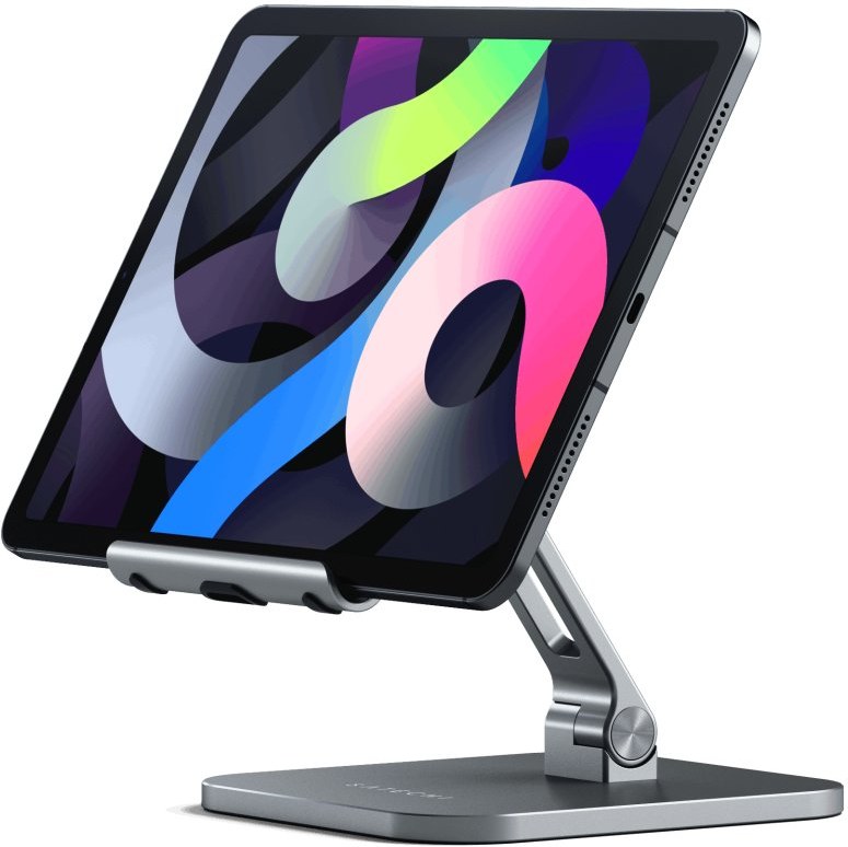 Pozdvihnite svoj iPad na viacúčelovú stanicu s hliníkovým stolným stojanom Satechi pre iPad. Stolný stojan, ktorý je vybavený nastaviteľným držiakom a pántmi základne so skladacím dizajnom, ľahko vytvorí dokonalé nastavenie pracovnej plochy, nech ste kdekoľvek, či už ide o skupinový hovor FaceTime alebo o načrtnutie vášho najnovšieho nápadu na vašom iPade. Hliníkový stolný stojan s elegantnou hliníkovou konštrukciou s ochranným polstrovaním na všetkých správnych miestach vytvára dokonalý domov pre váš iPad.Vlastnosti