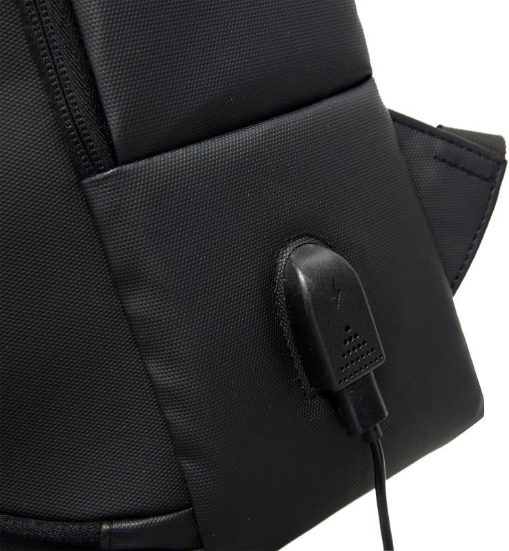 Bočný USB port umožňuje pripojiť powerbanku vo vnútri batohu a pohodlne nabíjať telefón či iné zariadenie bez nutnosti otvárania hlavnej komory.
