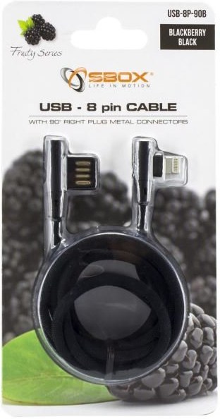 SBOX USB-A na Lightning kábel, lomený 90°, 1,5m, čierny