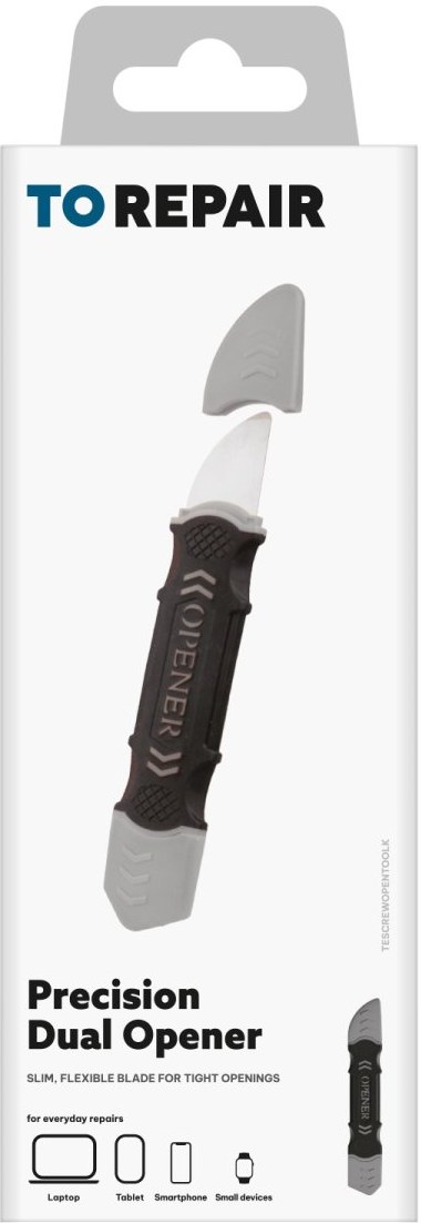 Špachtľa Precision Dual Opener bola vyvinutá špeciálne na precízne zásahy pri práci so smartfónmi, tabletmi a notebookmi. Je vybavená patentovanou, pružnou čepeľou z vysokopevnostnej nehrdzavejúcej ocele, ktorá vďaka mimoriadne tenkej hrúbke len 0,26 mm ľahko prenikne aj do tých najužších priestorov – bez rizika poškodenia vnútorných súčastí.