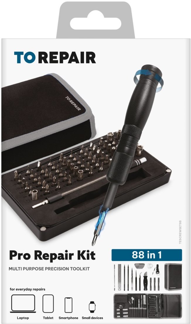 Súprava na opravu Pro 88 v 1 značky SBS, obsahujúca všetky nástroje, ktoré potrebujete na opravy notebookov, smartfónov, tabletov a iných elektronických zariadení.Profesionálne opravárenské nástroje