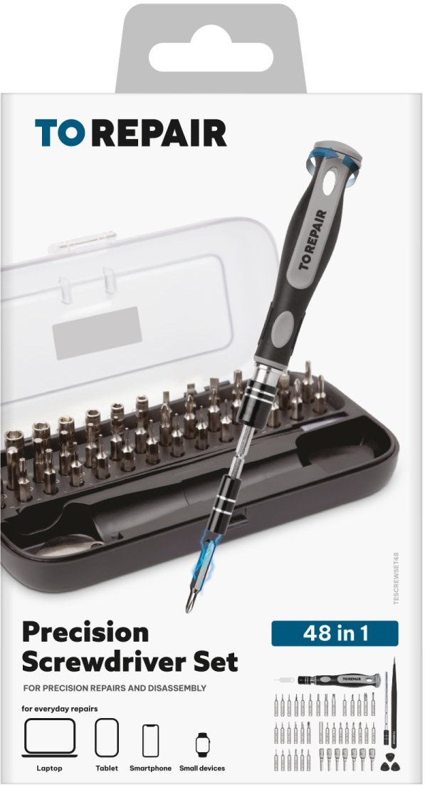 Súprava skrutkovačov 48 v 1 značky SBS, predstavuje kompletné riešenie pre profesionálov aj domácich používateľov, ideálne na opravu akéhokoľvek elektronického zariadenia.Ergonomická protišmyková rukoväť