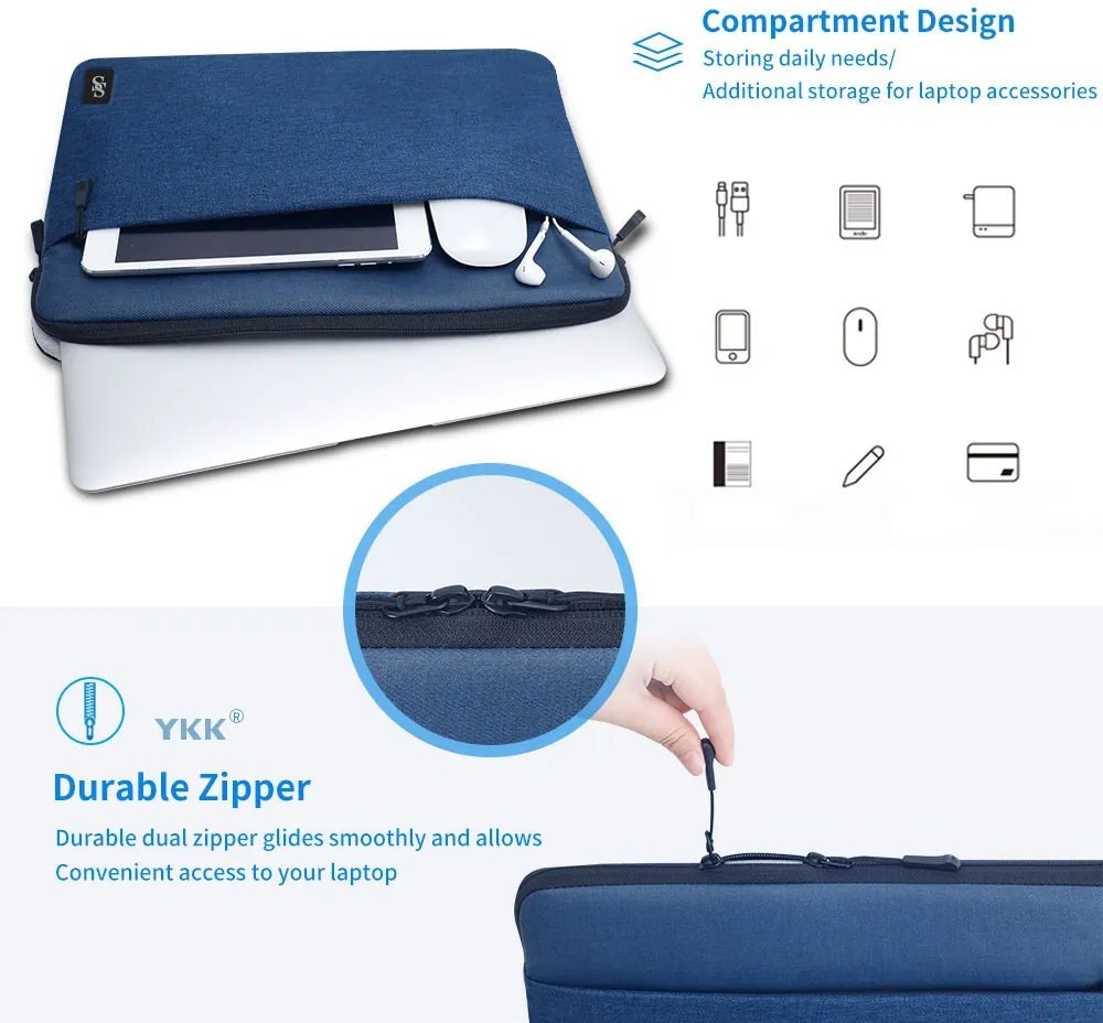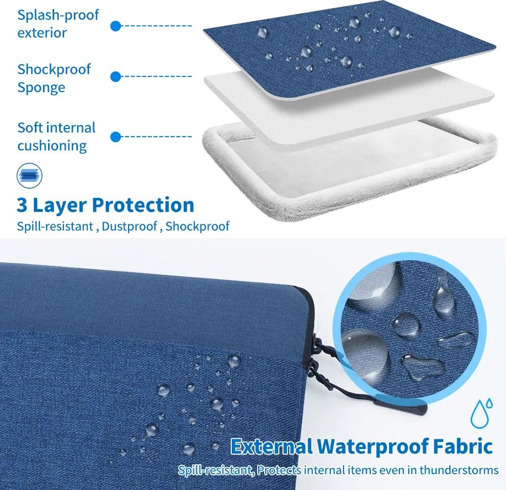 Taška je vyrobená z troch vrstiev textílie - vonkajší vodeodolný materiál, stredný náraz vzdorný materiál a vnútorný mäkký materiál. Vďaka týmto trom textíliám máte istotu, že je vaše zariadenie v bezpečí za všetkých okolností. Rohy tašky sú navyše opatrené ochranou rohov zariadenia.