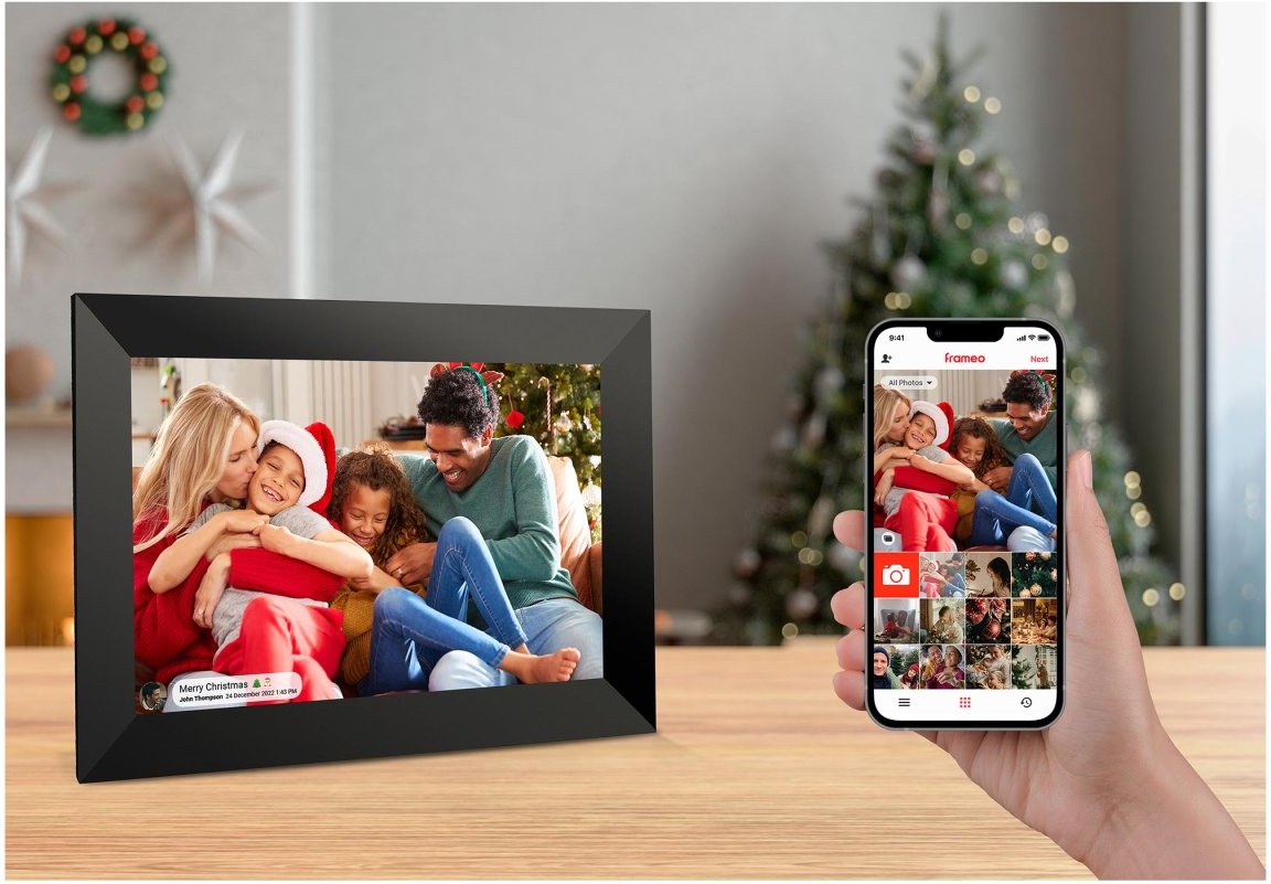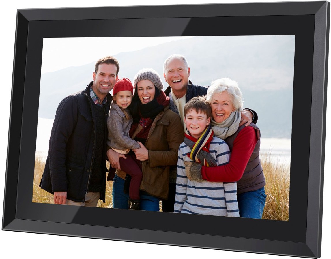 Wi-Fi digitálny fotorámček, 10.1 "(25,6 cm) IPS dotykový displej, MicroSD (SDHC / SDXC), Aplikácia pre iOS & Android smartfóny zadarmo (Frameo)Zobraziť viac