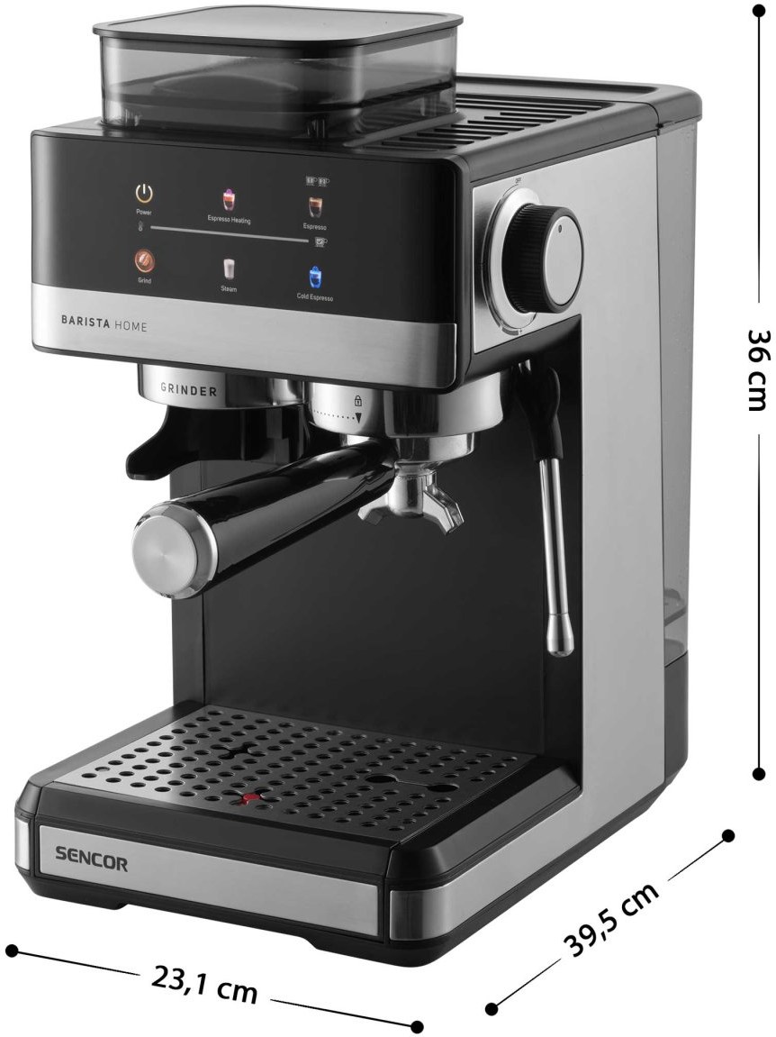 Sencor SES 5000SS, pákový Espresso kávovar so zabudovaným mlynčekom