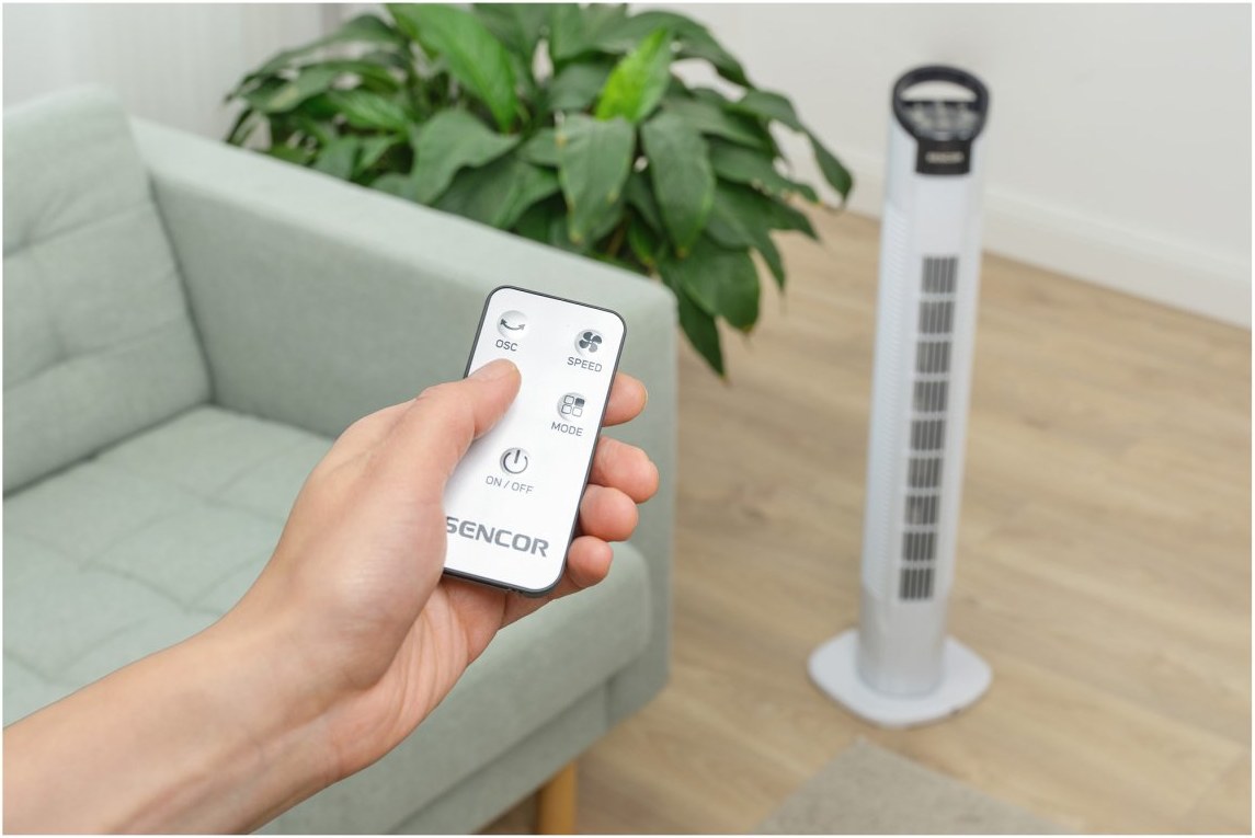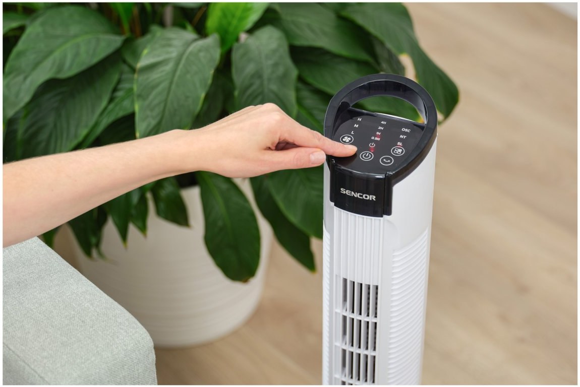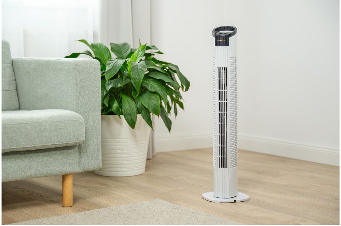 Počas horúcich letných dní stĺpový ventilátor príjemne osvieži vzduch. 3 nastaviteľné rýchlosti s výkonom až 50 W alebo horizontálne osciláciu, ktorá zaistí optimálnu distribúciu vzduchu, ľahko nastavíte na dotykovom paneli alebo diaľkovým ovládaním.