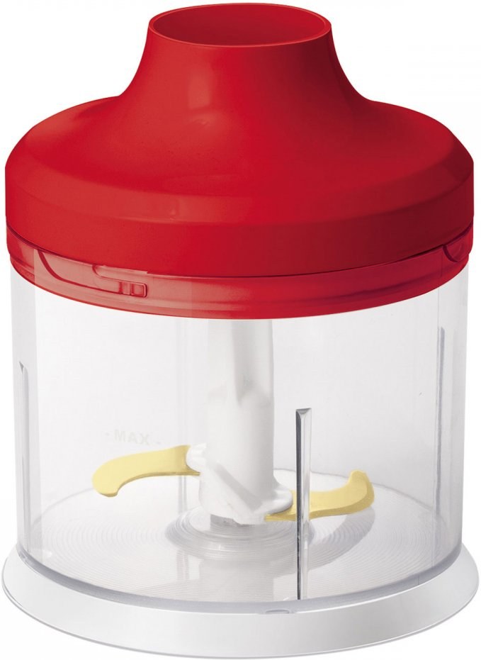 Nasadím rukoväť na nádobu sekáčika a show môže začať! Sekáčik má vlastné nerezové nože, s ktorými dokážem rozdrviť/nasekať prakticky čokoľvek.Akékoľvek tuhšie potraviny od más až po tvrdé syry, ovocie a zeleninu. Z orechov viem vyrobiť múku a rozdrvím ľad. Celý proces viem regulovať podľa požadovanej konzistencie, napr. hrubá, jemná, kaša, triešť.
