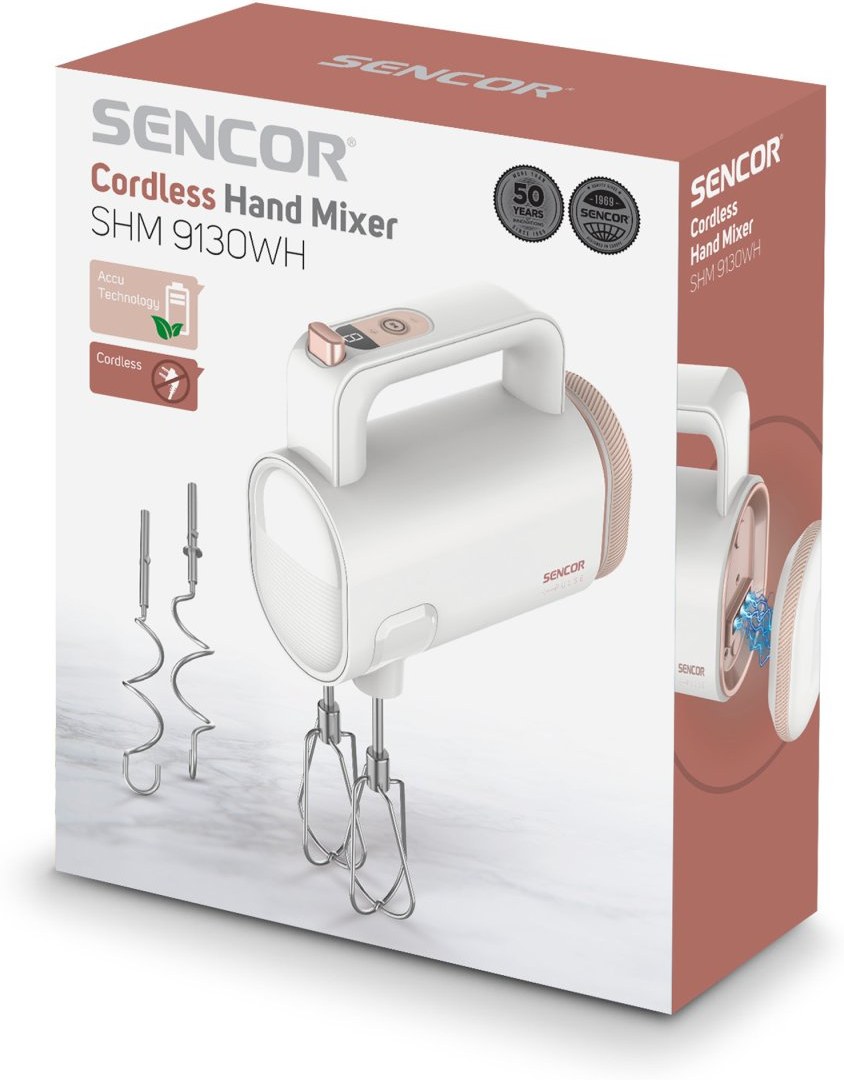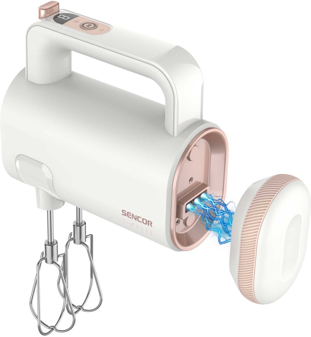 digitálny displej s 8 rýchlosťami pre recepty vyžadujúce miešanie, hnetenie a šľahanie, až 20 šľahacích cyklov na jedno nabitie, LED indikátor stavu batérie