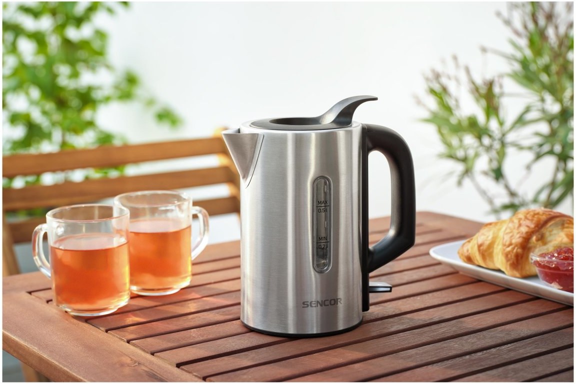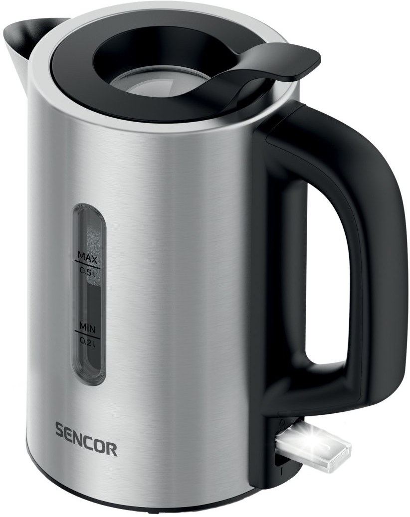 Malá a kompaktná rýchlovarná kanvica Sencor SWK 170SS je ideálna na cesty, do karavanu, na jachtu alebo len na úsporu miesta v malej kuchyni. Kanvica má objem 0,5 litra vody a je vyrobená z vysokokvalitnej nehrdzavejúcej ocele. Skryté vykurovacie teleso s výkonom 1100 W zabezpečuje rýchlu prípravu horúcej vody. Plnenie vodou je jednoduché prostredníctvom praktického veka, ktoré nie je potrebné otvárať ani dávať dole. Hladinu vody môžete kontrolovať priehľadným okienkom na boku kanvice.