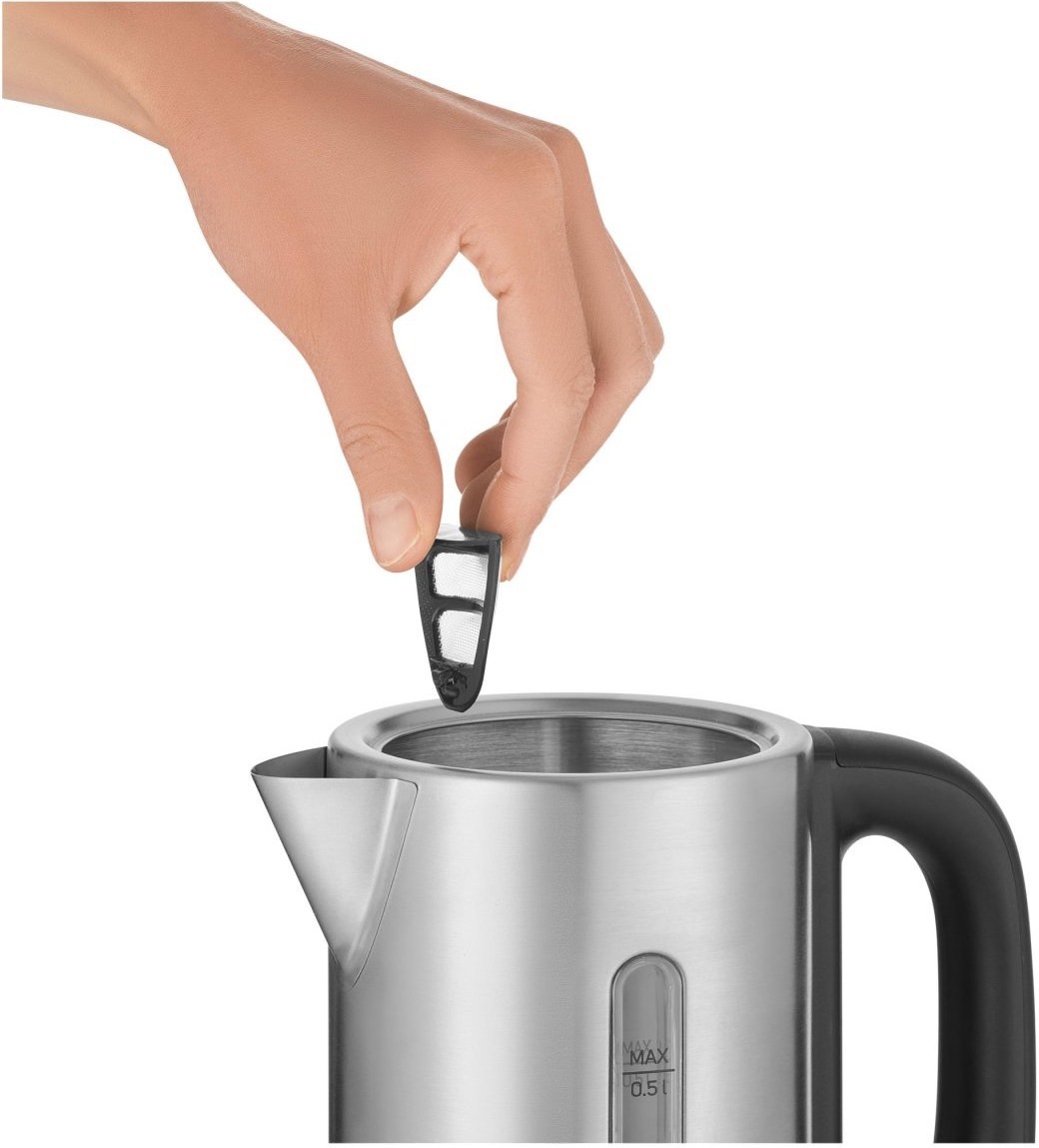 rýchlovarná kanvica, farba nerez, objem 0,5 l, príkon 1100 W, ochrana proti prehriatiu, materiál plast/kovZobraziť viac
