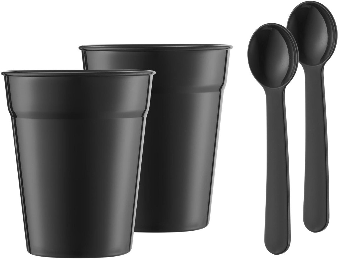 dva poháre a lyžičky z materiálu, ktorý neobsahuje BPA, v balení