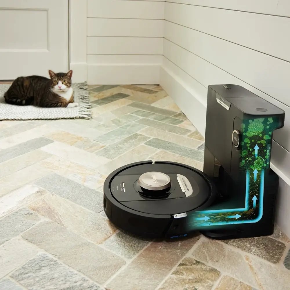 Po každom čistení robot automaticky vyprázdni svoju zabudovanú nádobu na prach do bezvreckovej základne ktorá pojme až 60 dní nečistôt a úlomkov. Nechajte svojho robota, aby za vás zvládal každodenné upratovanie bez potreby každodenného vyprázdňovania.