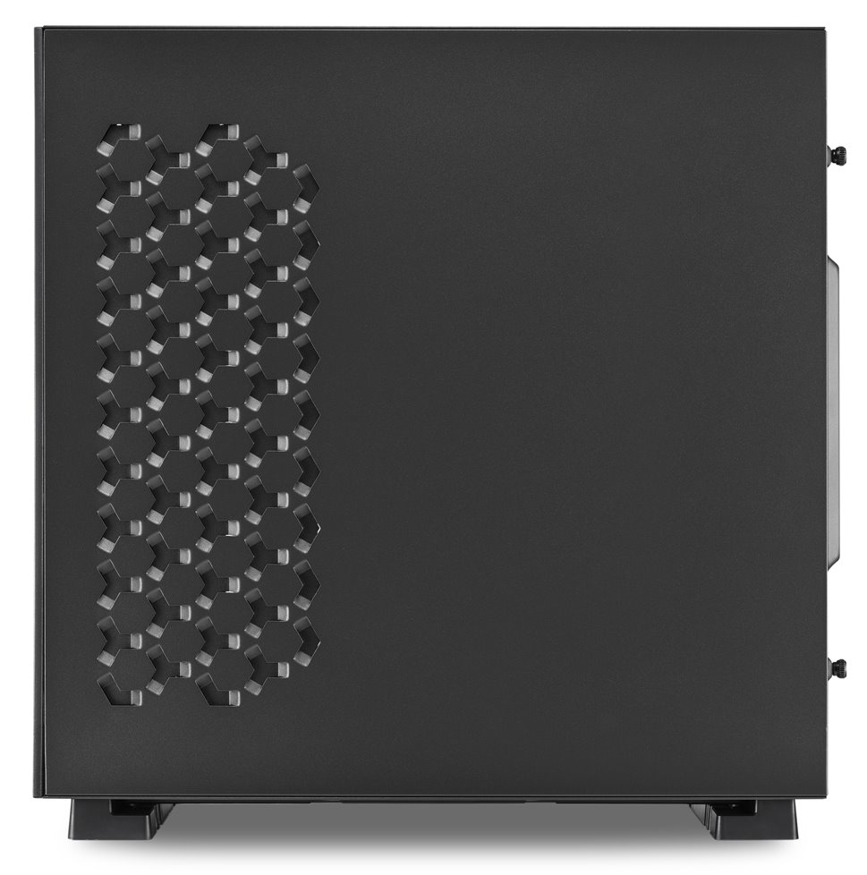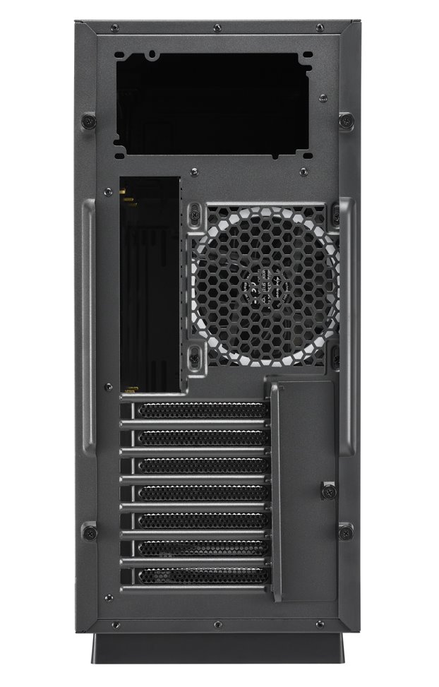 Kvalitní počítačová skříň formátu Middle Tower, která na první pohled zaujme průhlednou bočnicí a minimalistickým designem. Vybavena je čtyřmi ventilátory s RGB podsvícením o velikosti 120 mm, jejichž barvu je možné řídit automaticky při použití základní desky s odpovídajícím RGB konektorem či pomocí tlačítka Reset na horním panelu, díky kterému si lze vybrat ze 14 světelných režimů. Potěší také možnost rozšíření o další dva ventilátory. Na horním panelu se dále nachází také dva USB 3.0 porty, sluchátkový výstup a vstup pro mikrofon. Pro disky jsou k dispozici tři 3,5" pozice a pět 2,5" pozic. Aby se zabránilo prohnutí těžších grafických karet, je uvnitř skříně předinstalován speciální držák s pogumovaným povrchem. Skříň je dodávána bez zdroje.
