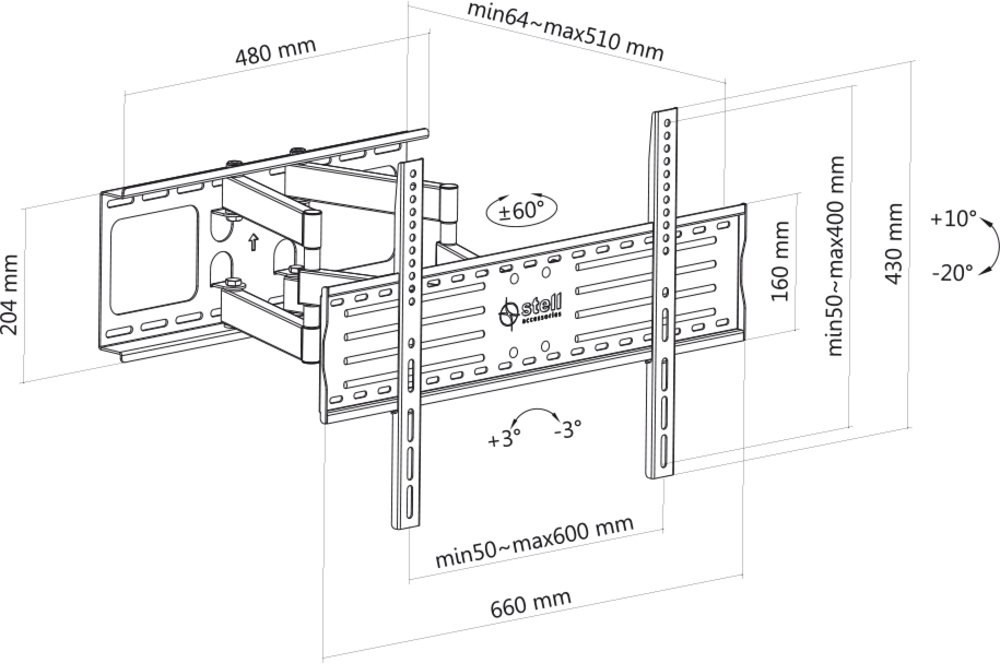 SHO 3610 mk2 SLIM výsuv. držiak TV STELL